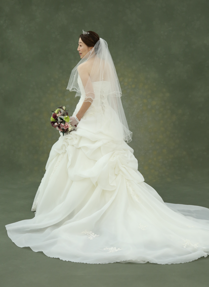 ウエディングドレスは後ろ姿も美しさが際立つので、新婦様お一人でも撮影します。