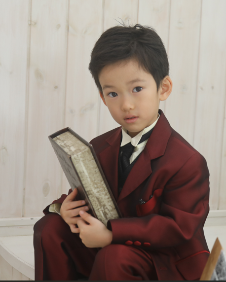 ワインレッド色のタキシードで大人顔負けのカッコイイ姿をみせてくれました。