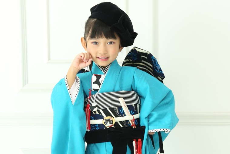 ターコイズブルーが目を惹く人気の和装で前撮り。